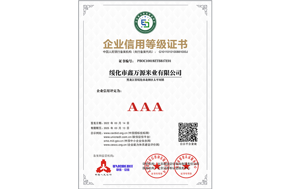 走進(jìn)我們 ABOUT US 您現(xiàn)在的位置:網(wǎng)站首頁 > 走進(jìn)我們 > 資質(zhì)榮譽(yù) 公司簡介 COMPANY PROFILE 領(lǐng)導(dǎo)致辭 CORPORATE CULTURE 資質(zhì)榮譽(yù) HONORS 企業(yè)文化 HONORS 黑龍江省級重點(diǎn)龍頭企業(yè) 黑龍江省級重點(diǎn)龍頭企業(yè) 專精特新中小企業(yè)證書 食品安全、質(zhì)量管理體系認(rèn)證證書 AAA級信用企業(yè):鑫萬源米業(yè) AAA級企業(yè)信用等級證書 共35條記錄 當(dāng)前為第6頁/共6頁上一頁1234...6下一頁
